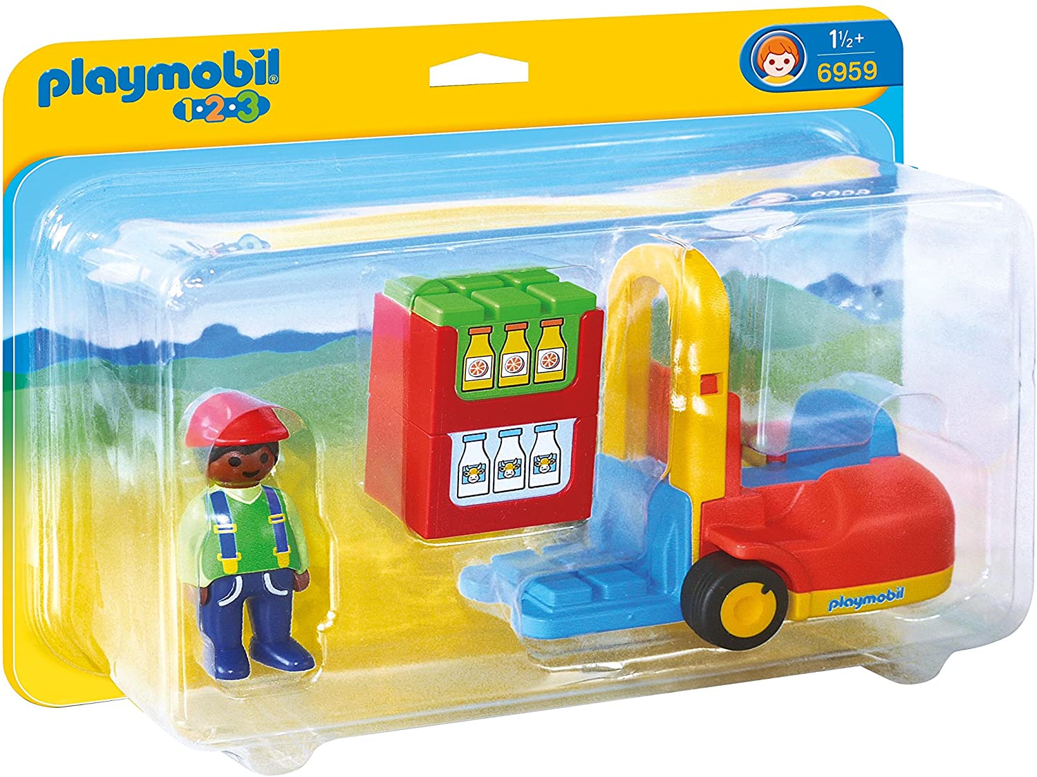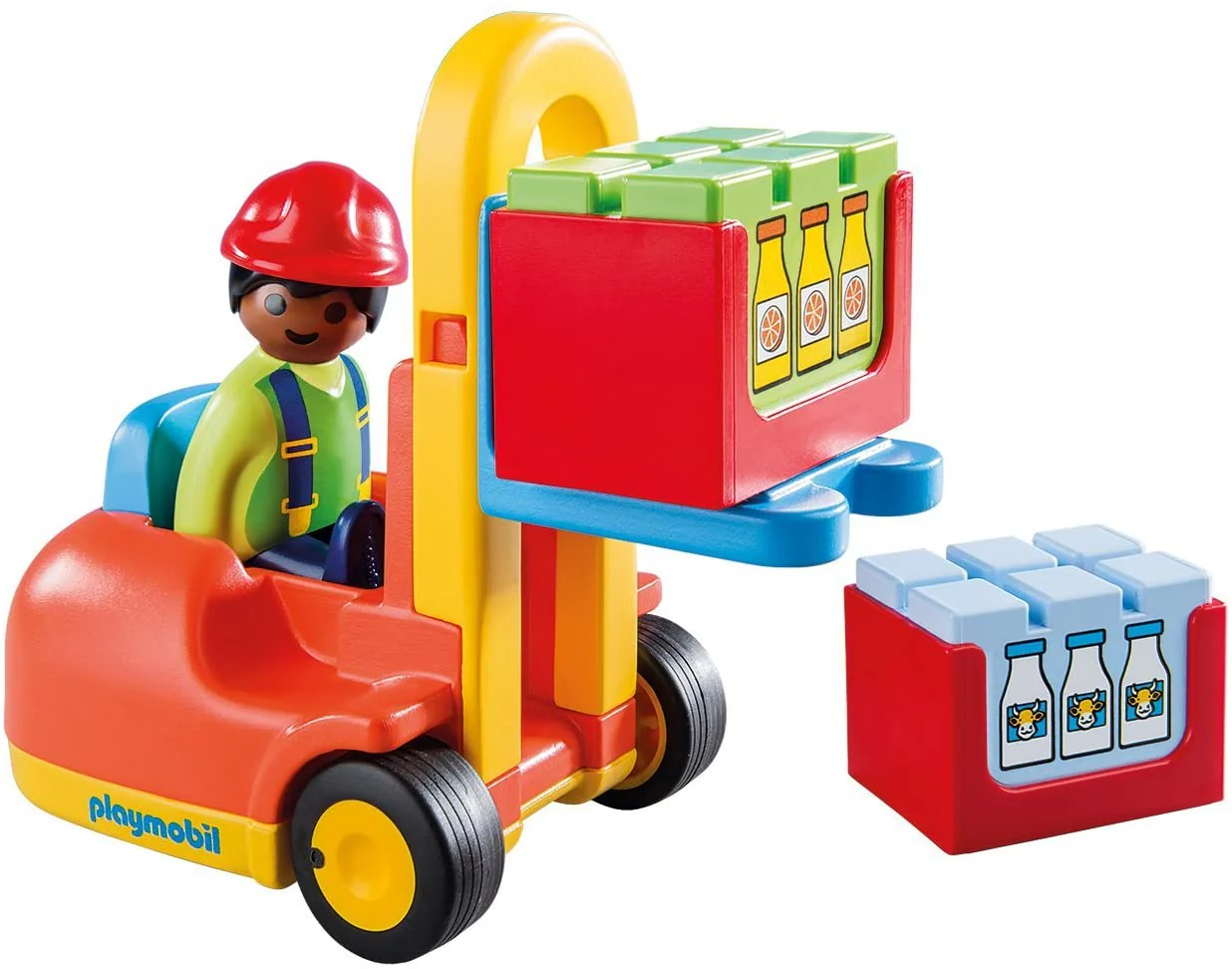 - Playmobil 1.2.3 Carretilla Elevadora con 1 figura y 1 caja.