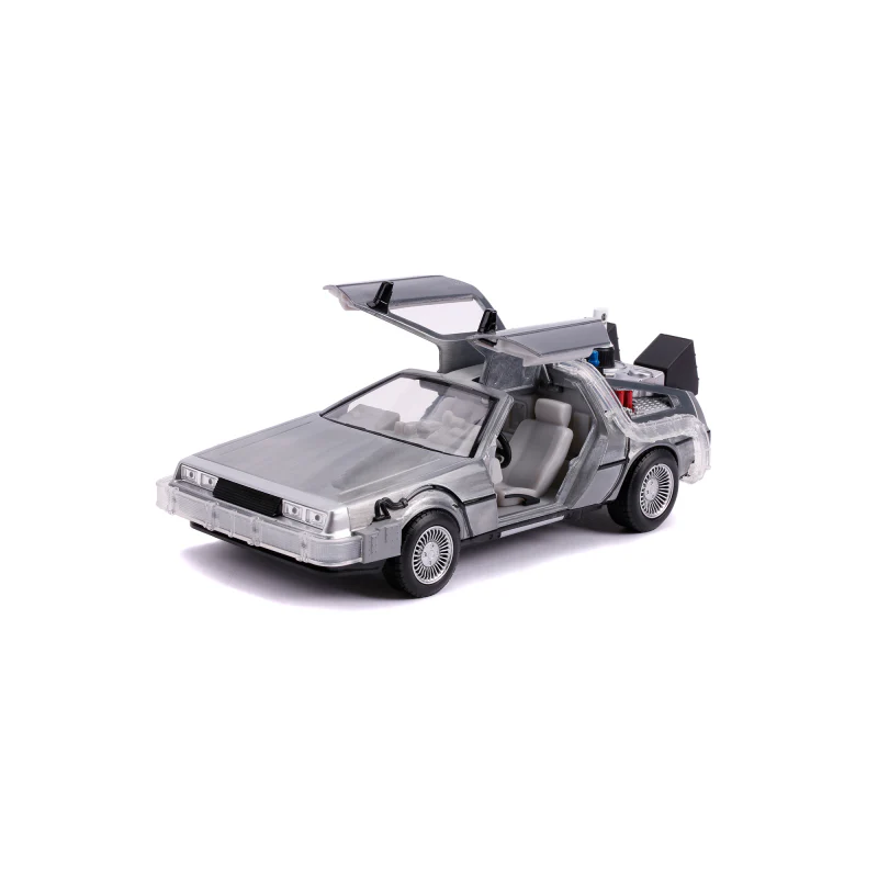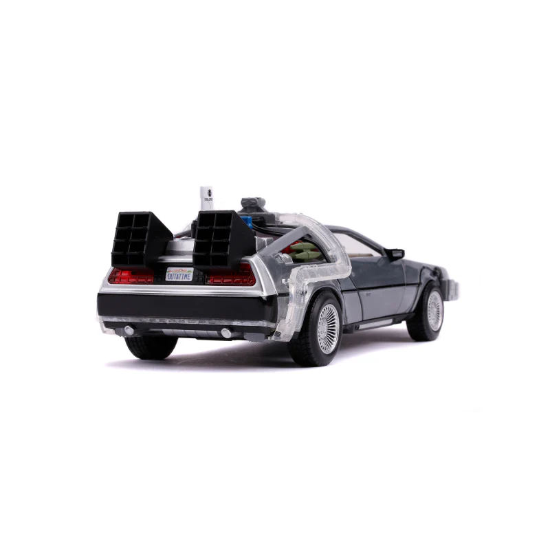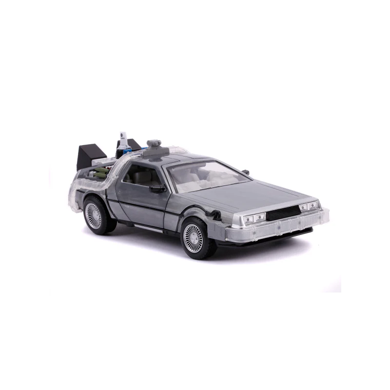 - Reproducción en metal a escala 1/24 del coche de la película Regreso al Futuro II .