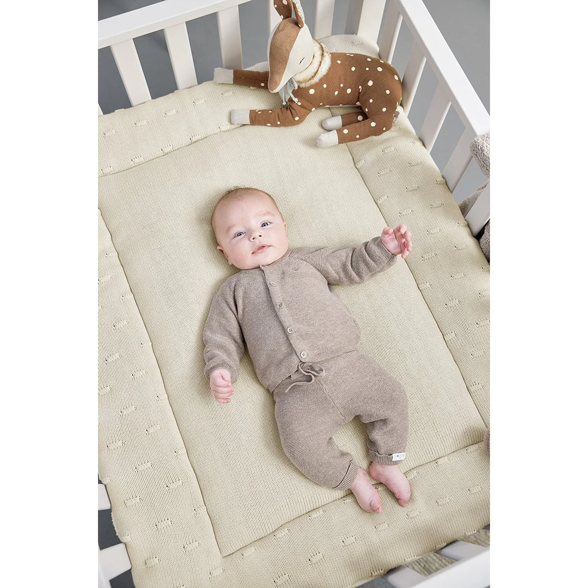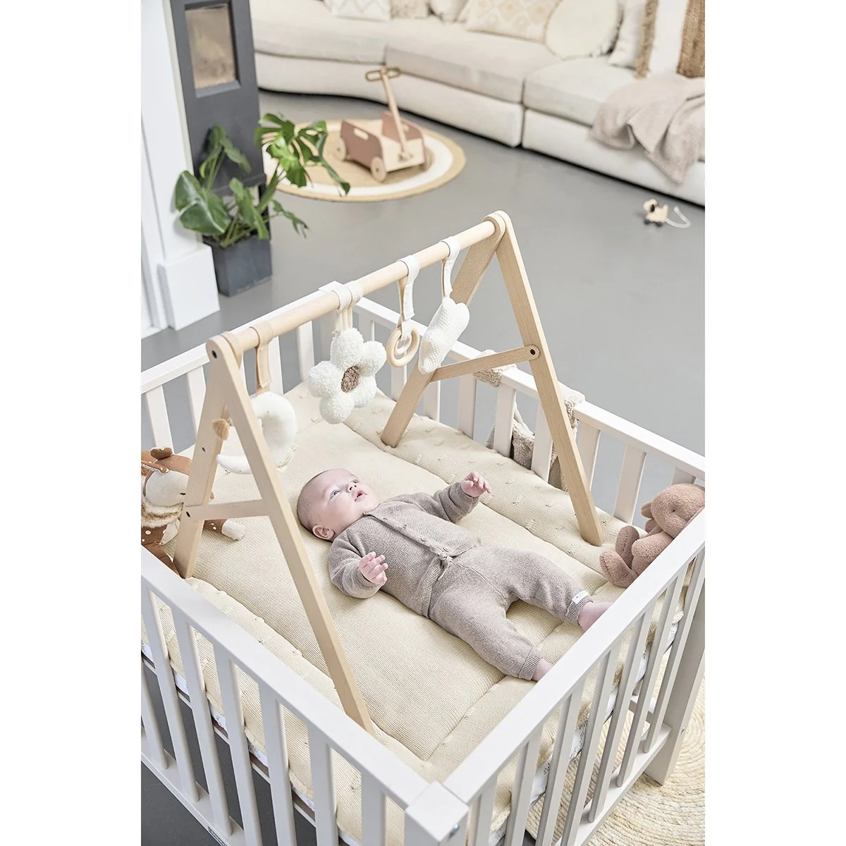 También puedes usarlo directamente sobre el suelo o incluso en el jardín como alfombra de juegos. Así tu peque siempre tendrá un espacio mullidito donde jugar o descansar.