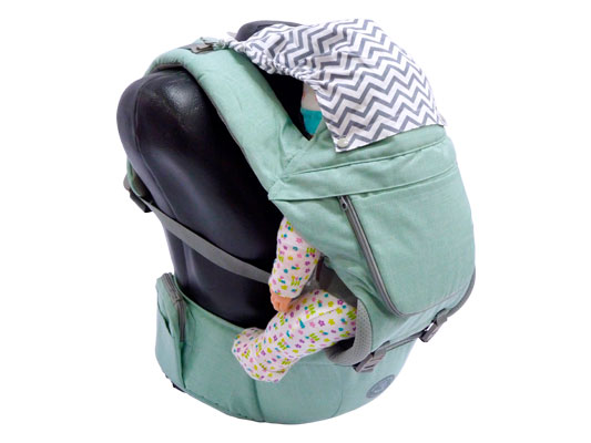 Además, cuenta con varios bolsillos que facilitan el almacenamiento de accesorios esenciales, manteniendo todo al alcance de la mano. Con una capacidad de carga que soporta desde el nacimiento hasta los 45 lb, es perfecta para acompañar el crecimiento de tu pequeño.