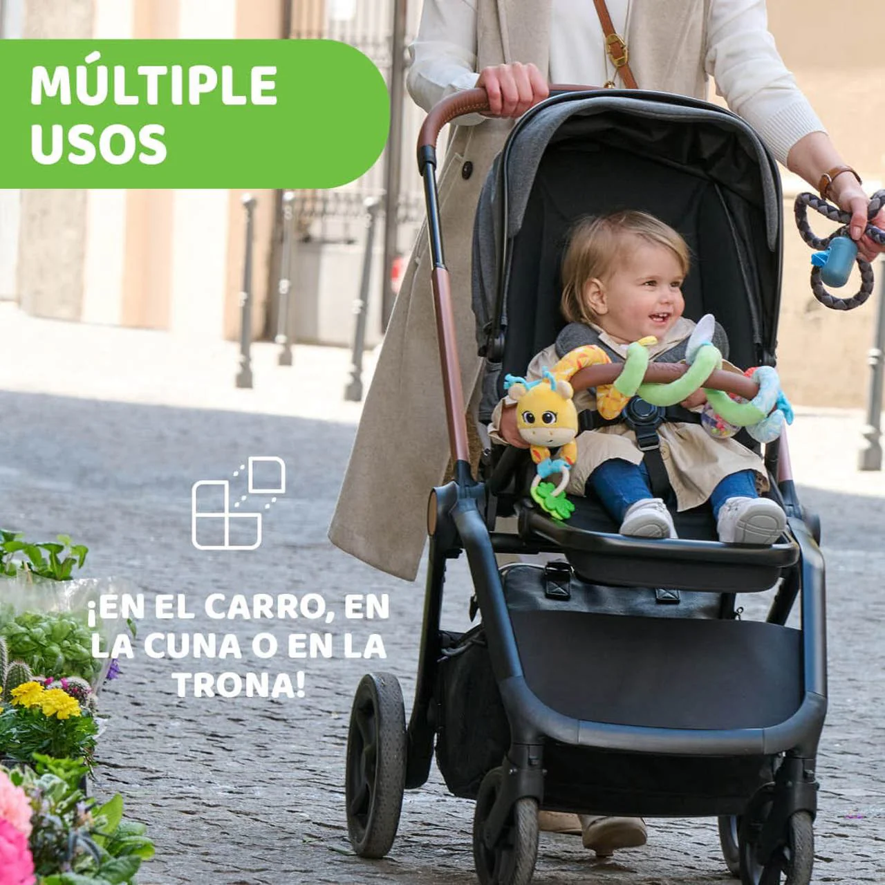 - Espiral de peluche para la barra del cochecito del bebé o en los barrotes de la cuna o la barra del gimnasio, el asa del maxicosi etc.