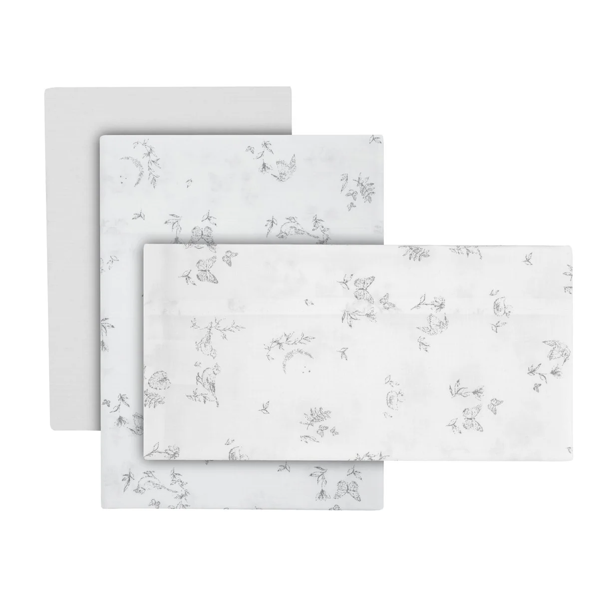 La Sábana minicuna 3 piezas de Cambrass es de algodón egipcio 100% lo que le aporta un tacto suave y sirve para minicuna de 80×120 cm. El set está compuesto de sábana encimera, sábana bajera y funda para almohada. Medidas: Sábana Encimera – 80×120 cm Sábana Bajera – 50x82x10 cm Funda Almohada – 30×55 cm