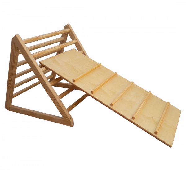 La Pirámide y rampa inspirada en la filosofía Pikler estimula el desarrollo temprano en diferentes aspectos. Por un lado, el conjunto fomenta la motricidad, el juego libre y la autonomía desde la primera etapa de bebés de 0 a 3 años y niños y niñas de 3 a 6 años. Por otro lado, el diseño de la pirámide crea un entorno de juego que facilita el ejercicio para la cordinación de brazos y piernas en la subida y la bajada.