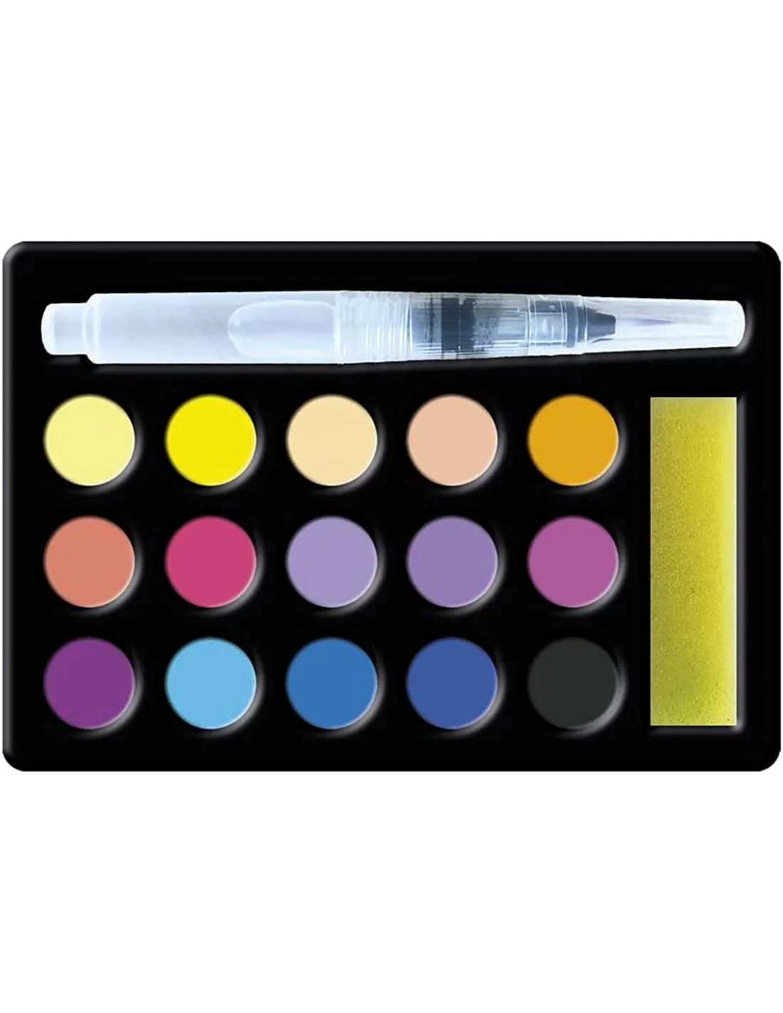- Incluye 15 colores de acuarela y un pincel dispensador de agua para no tener que mojar cada vez.