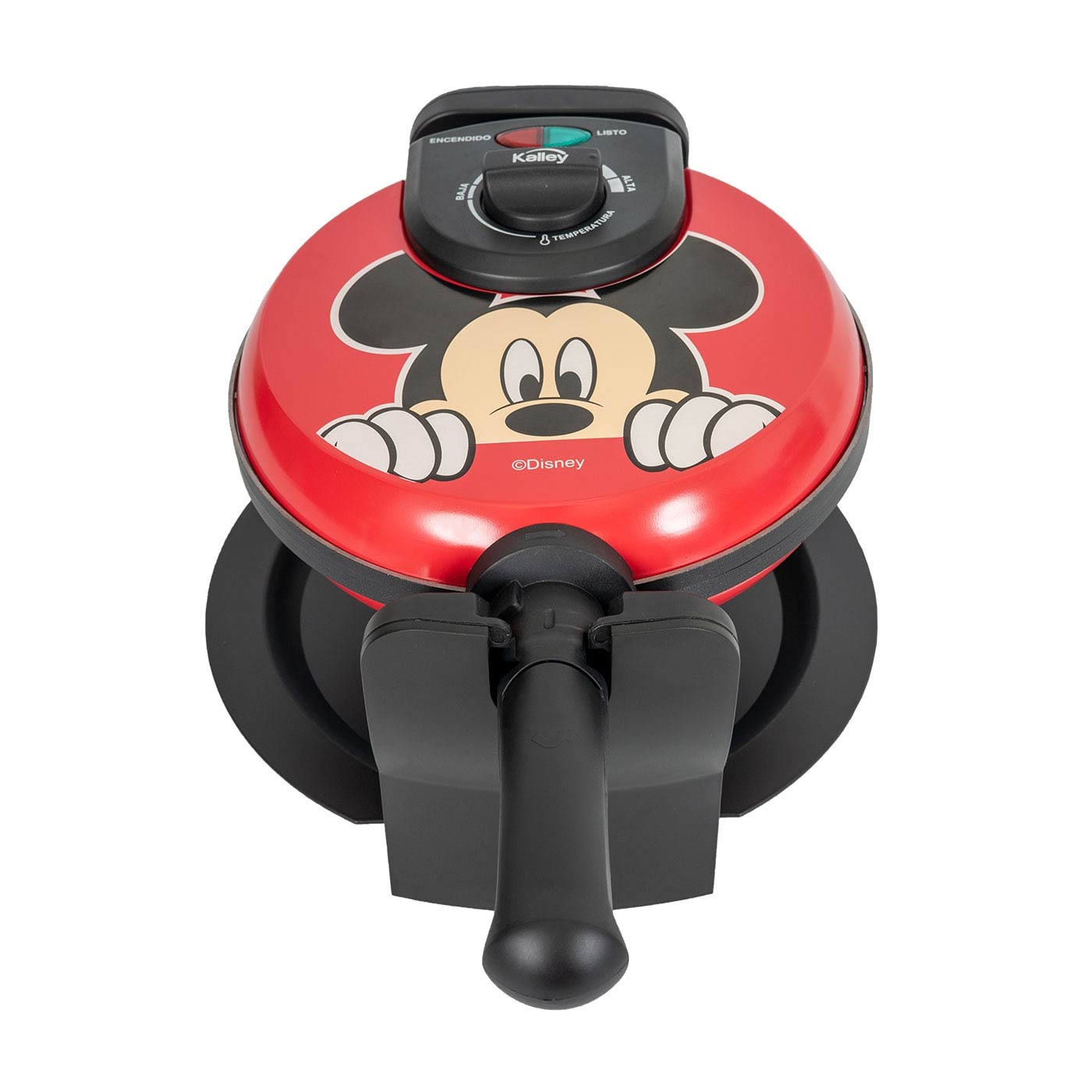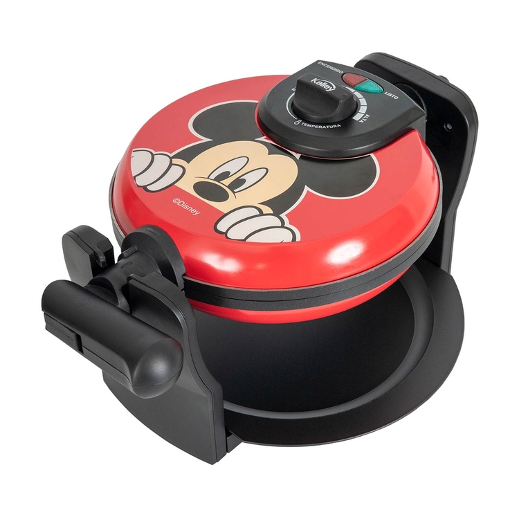 Kalley te trae una colección llena de aventura con la Waflera Kalley Mickey Mouse de Disney giratoria en acero inoxidable con un diseño único es ideal para iniciar tu día y sorprender a los que más quieres con unos deliciosos wafles en forma de Mickey, con potencia de 1000W para preparar los wafles en poco tiempo, rotación de 180° para obtener resultados uniformes y perilla de control de temperatura para que elijas la temperatura según tus necesidades y gustos. La superficie es antiadherente y cuenta con indicadores led.