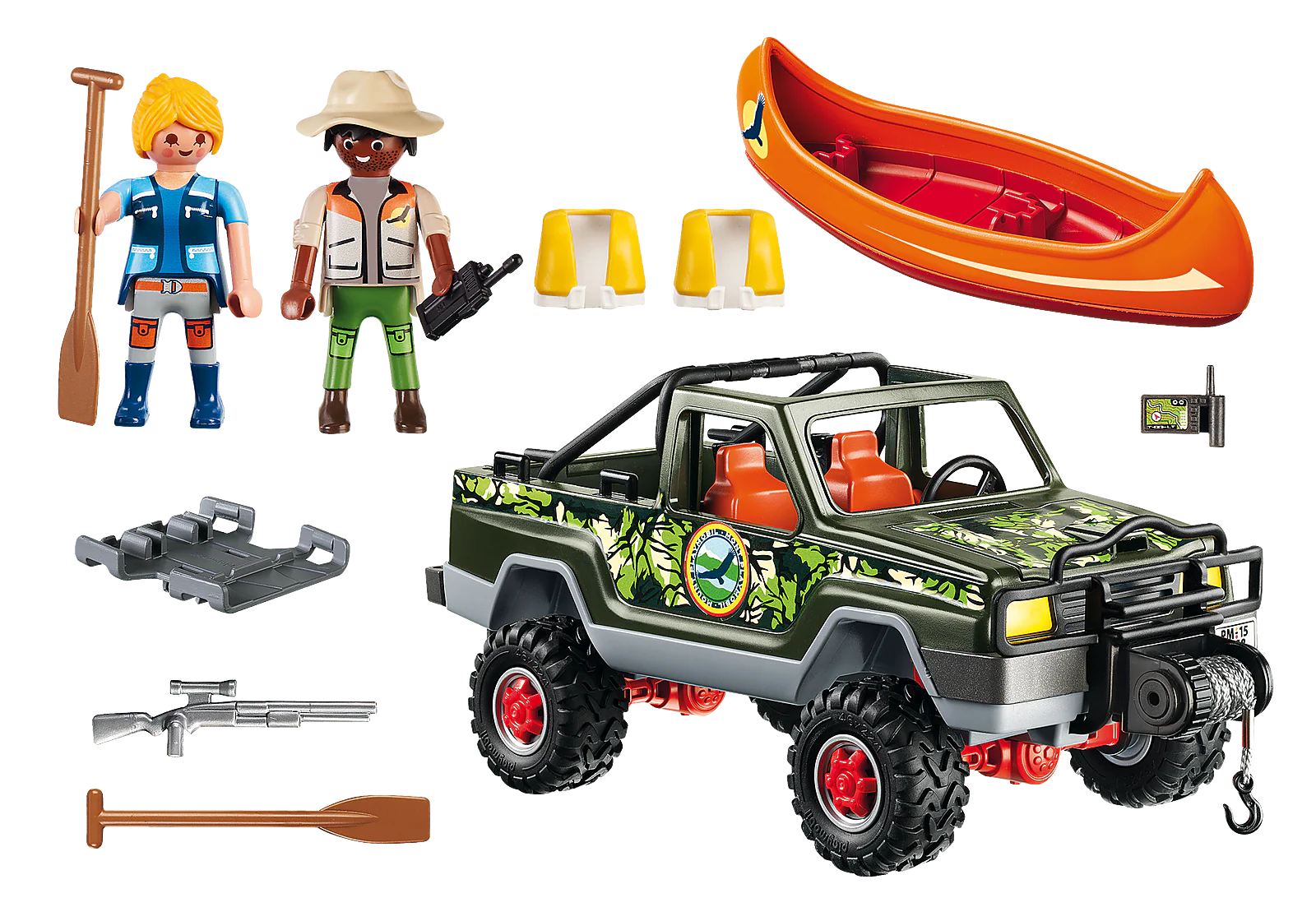- Incluye 2 figuras, canoa, pick up y varios pequeños accesorios mas.