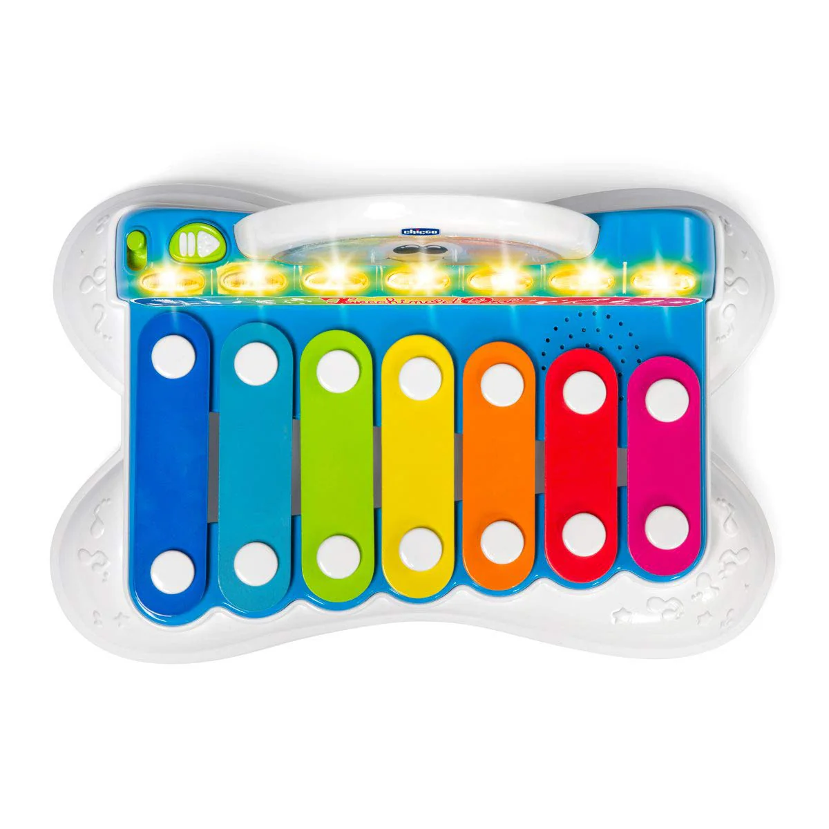 - Flashy el xilófono es un xilófono 2 en 1 que combina las barras de acero metálicas tradicionales con las funciones electrónicas actuales más divertidas.