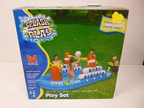 - Piscina hinchable en forma de barco , con juego de anillas y pelota y red para voleibol.
