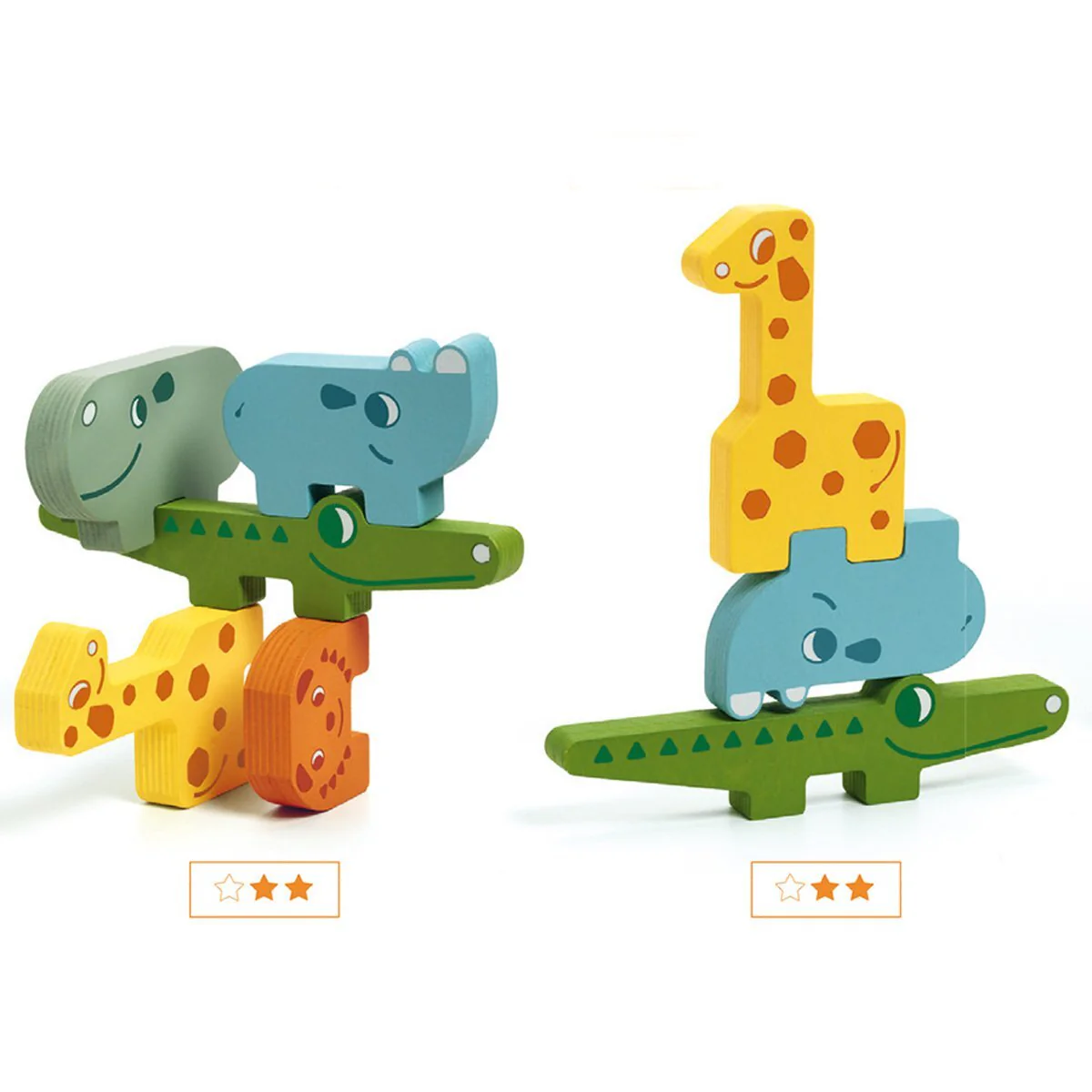 - Hay 20 cartas diferentes para recrear y 6 animales de madera diferentes.